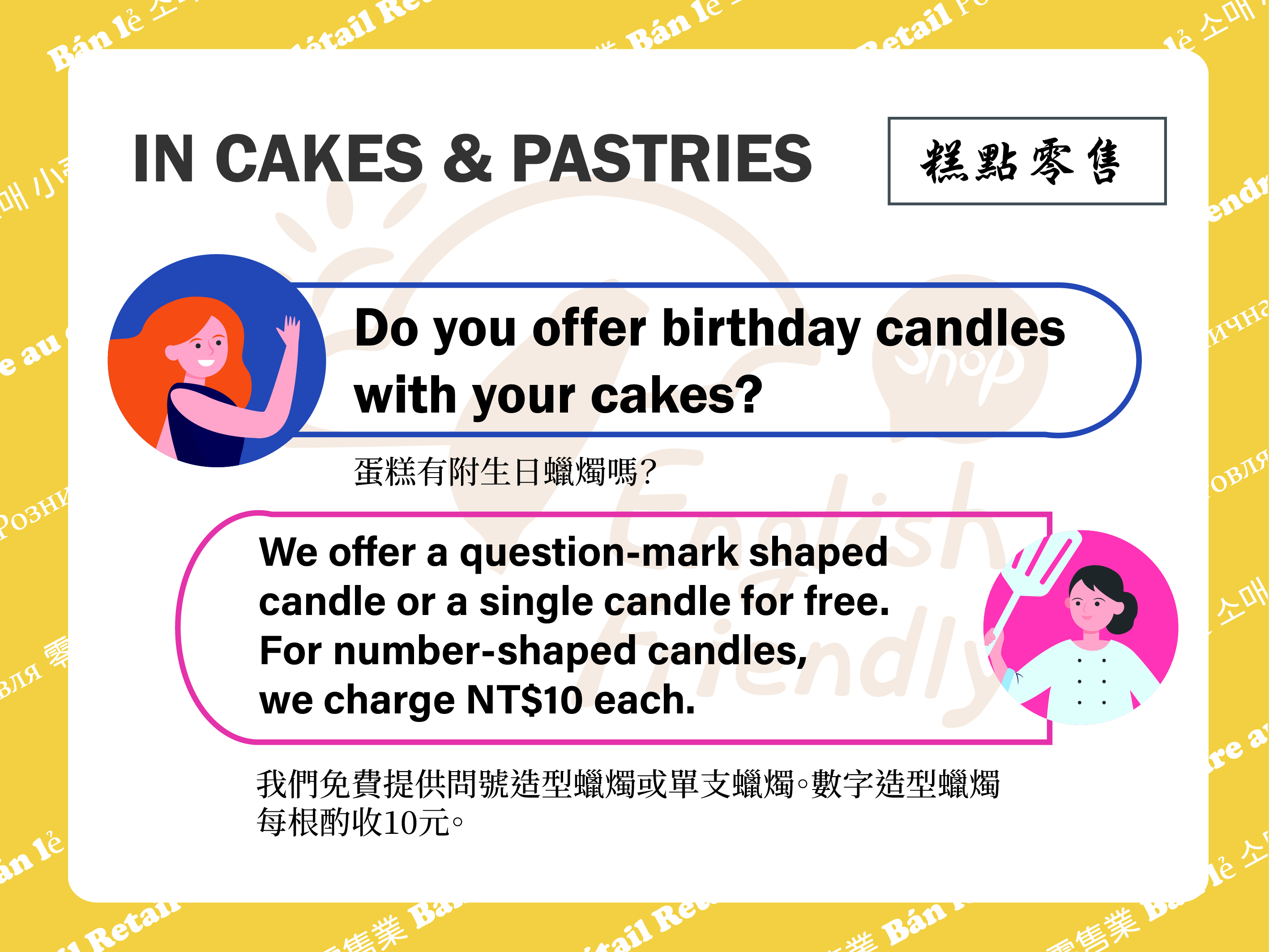 首頁 商業實用資源主題產業雙語指南糕點零售 回上一頁 友善列印 字級: 小字級 中字級 大字級 若您無法使用字級縮放功能,請改用鍵盤 "Ctrl" + "加號鍵" 或 "Ctrl" + "減號鍵",來放大或縮小字級。 分享: 分享到我的Facebook 分享到我的Twitter 分享到LINE 當SCRIPT關閉時,請點選以下連結. Facebook twitter Line 主題產業雙語指南 糕點零售 相關圖片