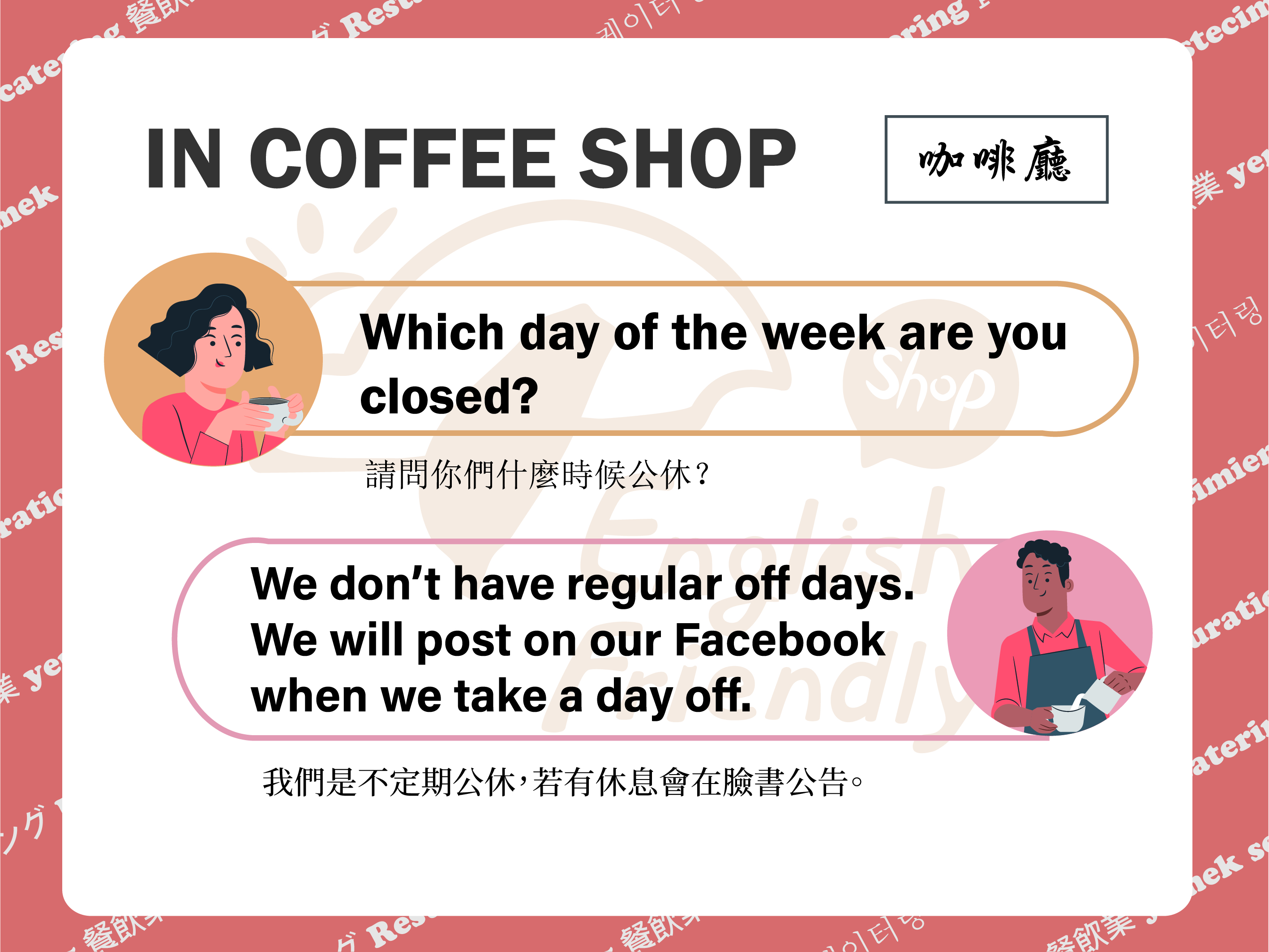 首頁 商業實用資源主題產業雙語指南咖啡廳 回上一頁 友善列印 字級: 小字級 中字級 大字級 若您無法使用字級縮放功能,請改用鍵盤 "Ctrl" + "加號鍵" 或 "Ctrl" + "減號鍵",來放大或縮小字級。 分享: 分享到我的Facebook 分享到我的Twitter 分享到LINE 當SCRIPT關閉時,請點選以下連結. Facebook twitter Line 主題產業雙語指南 咖啡廳 相關圖片