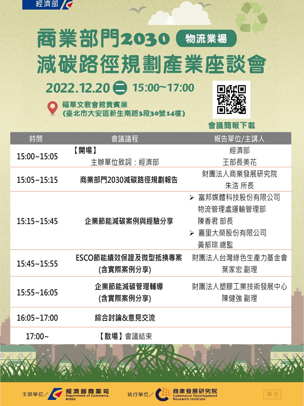 【座談會】「商業部門2030減碳路徑規劃」產業溝通座談會【零售業、物流業場次】(已結束)