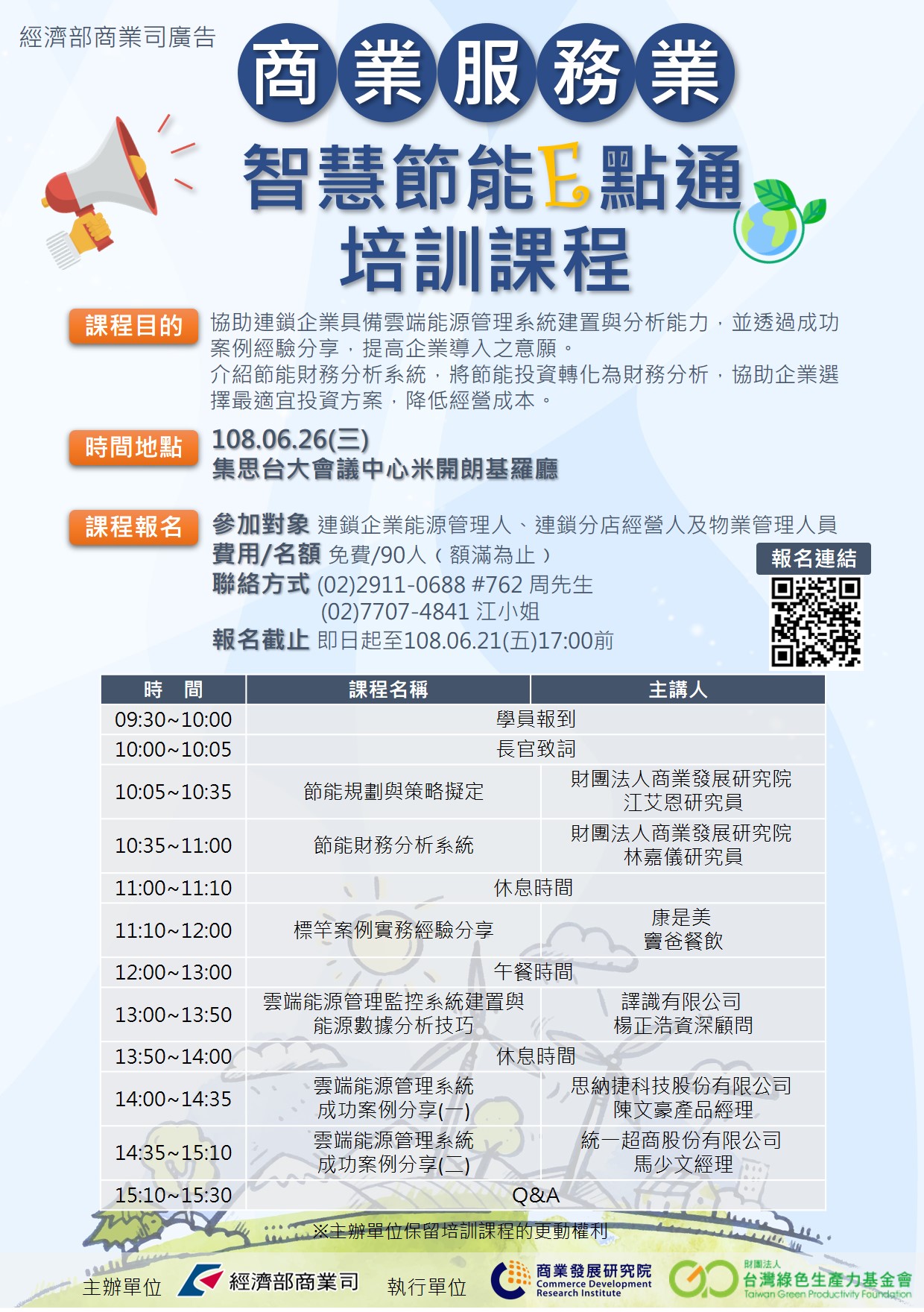 - 參加對象:連鎖企業能源管理人、連鎖分店經營人及物業管理人員