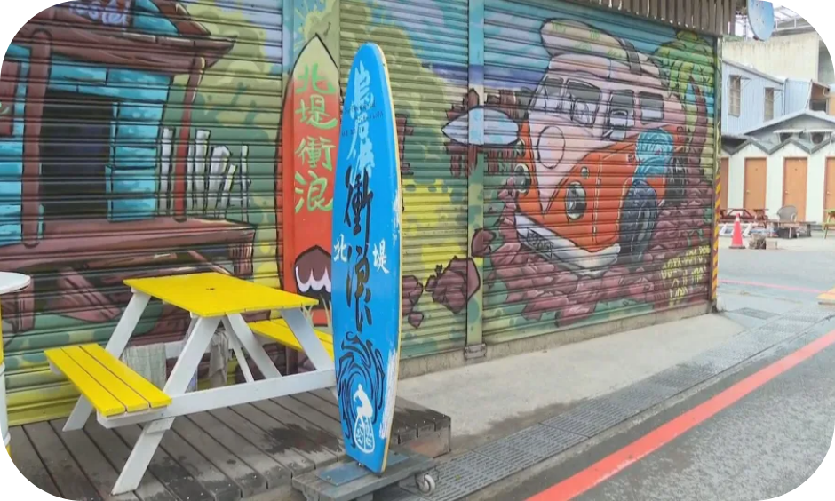 【這浬海很藍,這浬海很美】頭城烏石港衝浪街作為示範點,匯集當地資源與獨特性,結合竹編藝術與衝浪文化,推動社區創生與生態轉型。該區域致力於打造共創營運模式,促進頭城休閒產業的轉型與發展,並注入人文地景、教育與多元發展的內涵,為宜蘭帶來深遠的影響。