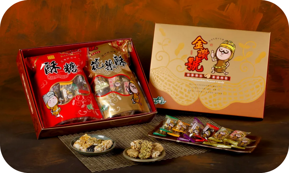 金讚號老闆秉持求新求變的精神,致力於製作甜度適中、不黏牙且口感更佳的產品。近年推出的杏仁酥、南瓜子酥以及夏威夷豆酥糖,廣受顧客好評,成為深受喜愛的產品。