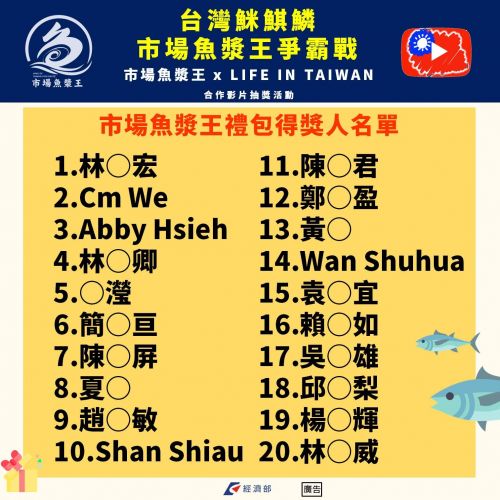 市場魚漿王ALLAN影片抽獎得獎公告