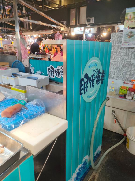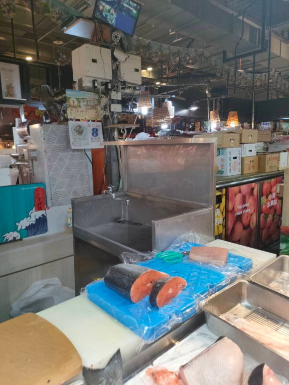 1.招牌保留了原本商標又加以清新化整體攤位之主視覺,購物空間更顯明亮舒適。 2.背牆管線包覆整理後,讓攤位能明顯變乾淨整齊,美化的牆面亦可以提升整體質感,提高顧客來此選購意願。 3.新不鏽鋼漁貨洗滌台更將提升衞生標準,提升消費者採購信心。