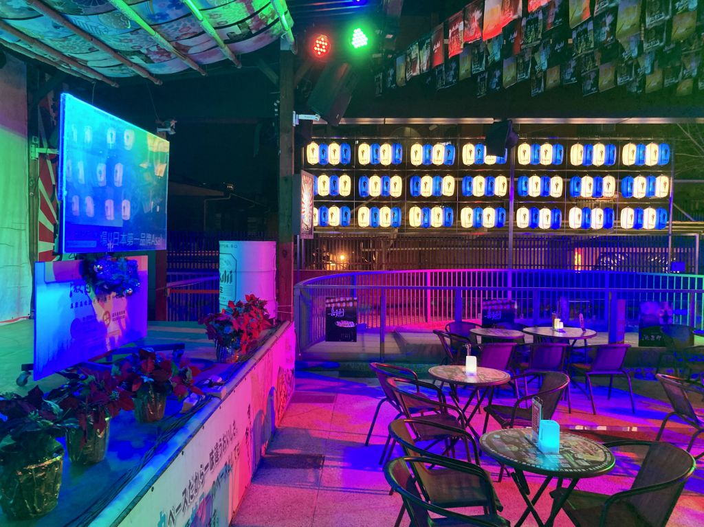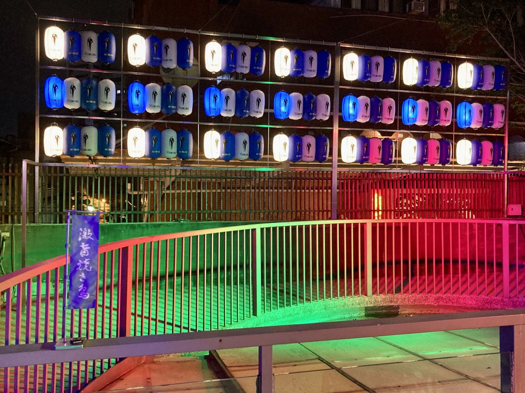 激旨燒き鳥是逢甲夜市也是台中市第一家夜市榮獲五星樂活名攤評鑑榮譽店家。 一直以來秉持初心,期能提供消費者美味的食物、優質的服務、安全衛生的品質及舒適的用餐空間。不斷的自我要求,除參加經濟部評鑑榮獲五星之外在111 年更參加台中市食品安全平和榮獲優等。 二樓用餐區一直以來右側的視覺區被雜亂的建築影響整體空間美感。趁此機會增設燈籠牆,將右側影響美感的的建築物區隔開。營造出視覺統一的日式歡樂廟會空間氛圍與美感。