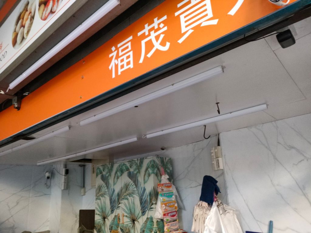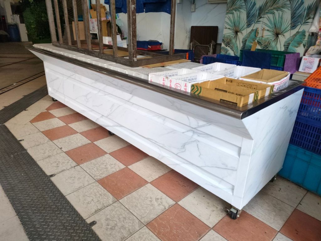 位於大門口的山東行,輔以清新的視覺招牌與色系,加強壁面與攤裙的大理石紋效果,與市場整體規劃因素作連結,強調整體感。