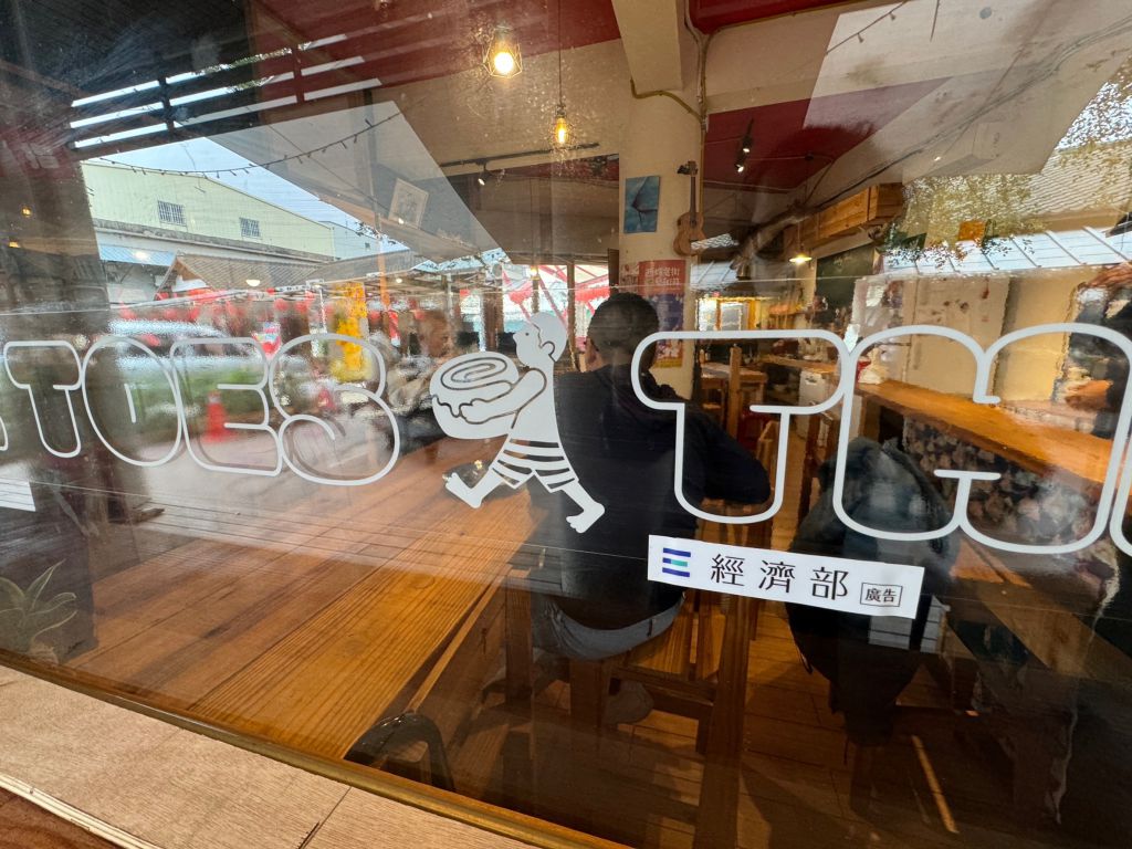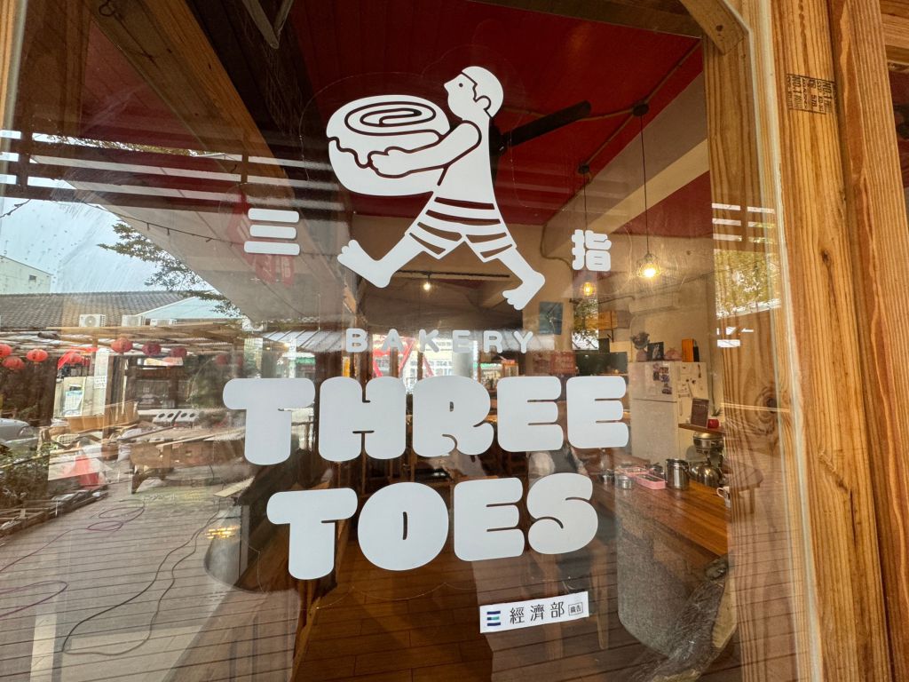 3.於半開放式的三⾓窗空間進⾏改善,將三指餐飲部逐漸轉型為烘焙坊的形式與品牌,規劃烘焙坊、麵包攤的展⽰櫥窗吸引遊客,讓營業空間更為正式且明確,以新穎的視覺呈現品牌新貌。並且搭配新作⽊作店⾯,以⼤圖輸出的⽅式配合店⾯結構的切割貼圖,呈現品牌形象。