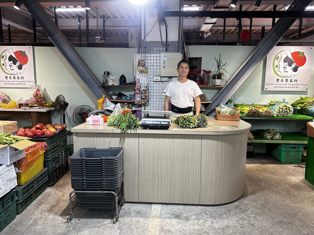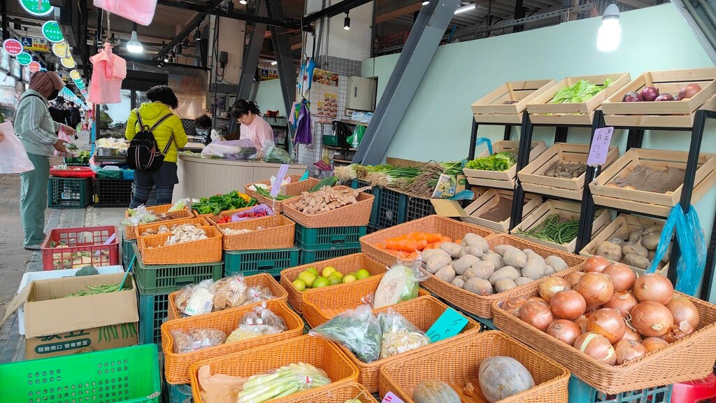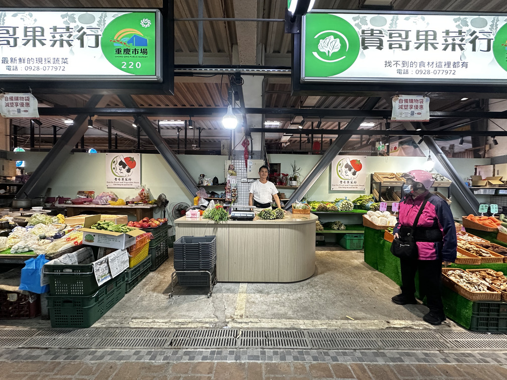 - 原攤商販售層架視覺上紊亂,故設計三層蔬果台,下方可收納批發用大菜籃,上方三層格可放置6-9種的商品,讓空間更有效運用。