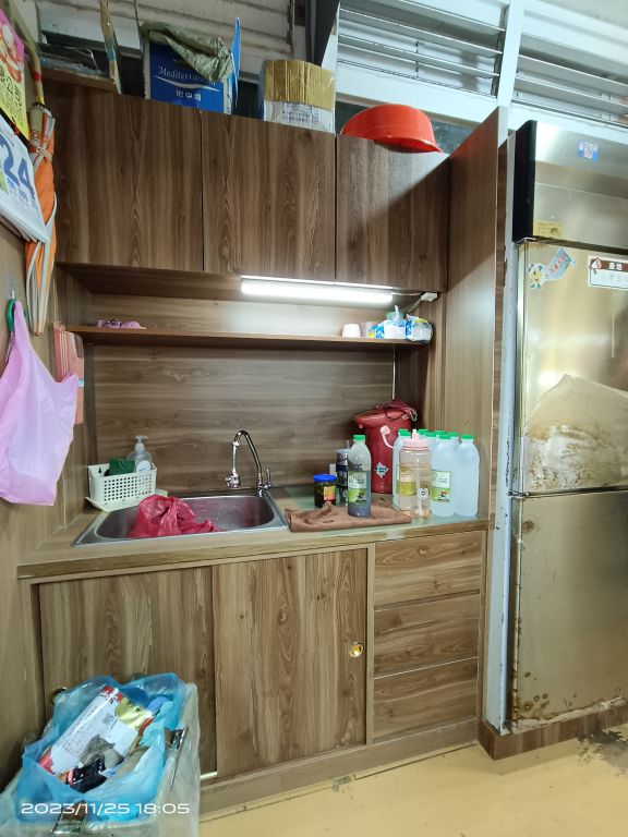 1攤舖於前方展示、攤招有一定的美感,惟視覺穿透會看到後方工作區,於此,改造收納空間一併考量。