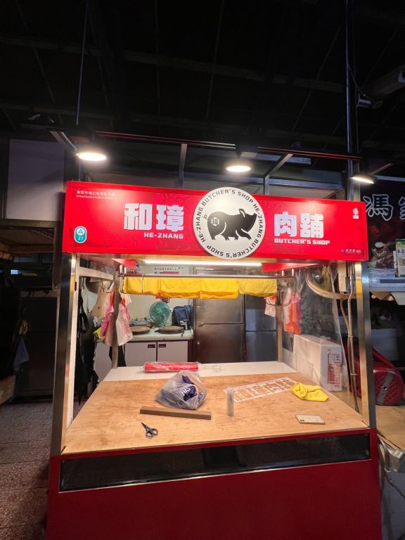 攤舖整體規劃設計:將招牌重新規劃,商號製作立體字,再移除後方老舊攤台,增加白鐵攤臺、天花板及燈光照明。